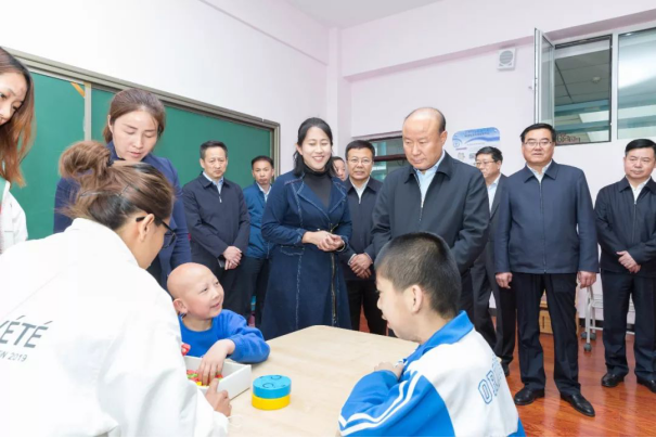 在市特殊教育学校,斯琴毕力格听取了我市特殊教育近年来的发展及残疾儿童教育安置情况汇报,查看了体育馆、教学楼、国学馆、职教工作室等场所,详细了解了各个教室和功能室的设施配备和使用情况,关切地询问了残疾学生在校学习、康复、生活状况。他指出,办好特殊教育意义重大,要加快残疾学生职业教育的发展,突出特色、面向市场,不断摸索和创新,设置符合市场需求的专业,培养社会急需的人才,使残疾学生能真正做到自力更生。