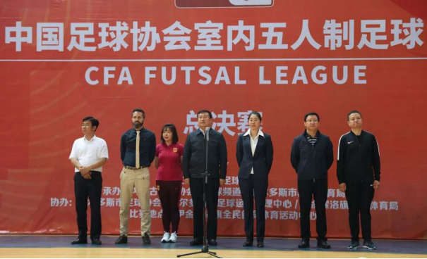 5月22日,2019中国足球协会室内五人制足球甲级联赛总决赛在伊金霍洛旗全民健身中心开幕,中国足球协会五人制与沙足部五甲联赛项目主管刘盼盼、中国五人制足球男子国家队主教练塞尔吉奥、内蒙古足球协会综合部部长李皓、鄂尔多斯市教育体育局副局长徐俊卿等出席开幕式并为比赛开球。