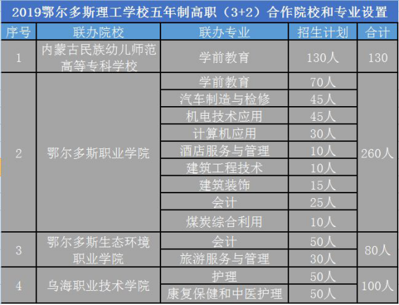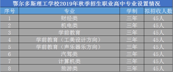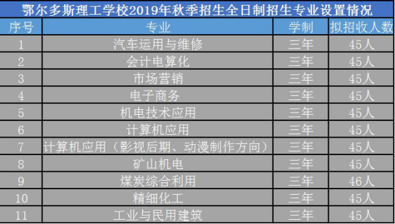 凭借国家大力发展现代职业教育的东风,鄂尔多斯理工学校根据当地经济社会发展和产业转型升级实际需要,全面实施立德强能工程,整合优化教育教学资源,调整优化专业结构,设立财经、机电、交通运输、资源环境、土木水利、信息技术、旅游服务、石油化工八大专业群。建有5万平米80多个集教学、实训、研发、生产经营、技术培训为一体的具有国内先进水平的校内实训基地,形成了集实训教学、技能鉴定、对外服务多功能于一体的职业技能训练中心和鄂尔多斯市青少年职业能力科普中心。牵头组建鄂尔多斯机电职教集团,与上百家大型企业建立了战略合作关系,完善产教融合、校企合作人才培养模式:共同制定人才培养方案,共同设置专业,共同开发课程,开展冠名培养、订单式培养,实现了学生专业技能与岗位需求的“无缝对接”。