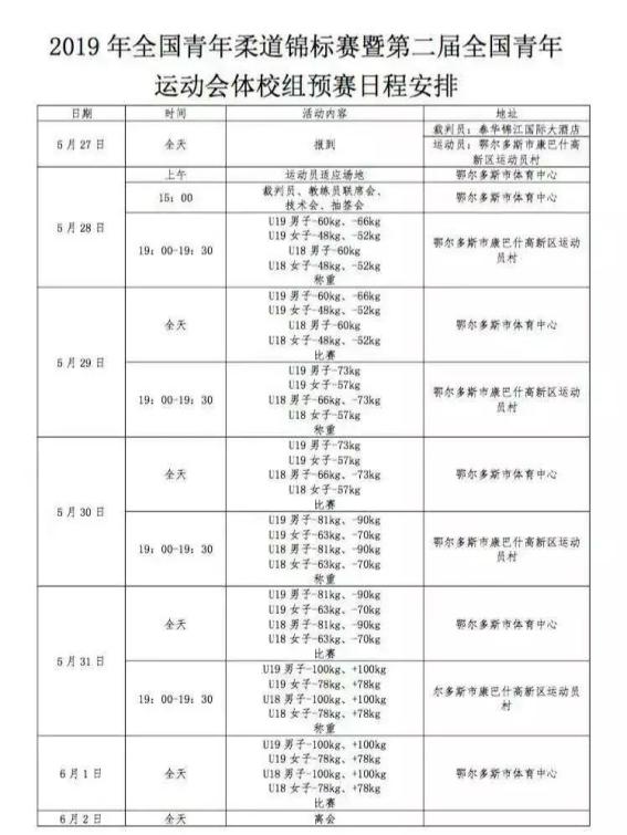 5月29日,由中国柔道协会、内蒙古自治区体育局、鄂尔多斯市人民政府主办的2019年全国青年柔道锦标赛暨第二届全国青年运动会体校组预赛在我市体育中心开赛。