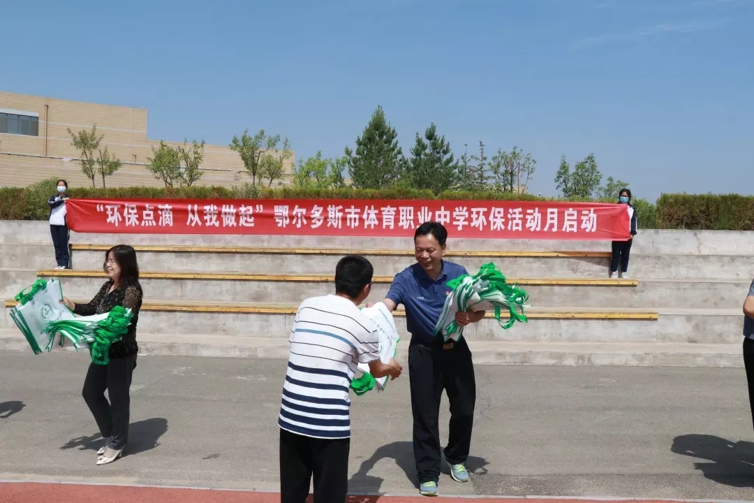 2020年6月12日,鄂尔多斯市体育职业中学开展庆“七一”系列活动之“环保点滴 从我做起”环保宣传月启动仪式,学校领导、教职工及初、高中一二年级同学参加启动仪式。