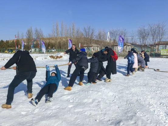 在活动现场,处处洋溢着大人孩子的欢声笑语。雪地拔河不再是单纯的力气比拼,而是化身“力量大联盟”,父母与孩子紧握同一根绳,在齐声呐喊中感受团结一心的家庭凝聚力。雪圈保龄球赛道旁,家长们或为孩子加油鼓劲,或一同乘坐雪圈飞驰而下,共享风驰电掣般的兴奋与尖叫。冰上龙舟项目,更成为亲子协作的生动课堂。孩子们与父母组成“最佳拍档”,或步调一致向前冲,或相互扶持跨越障碍,信任与默契在一次次携手闯关中悄然增长。备受期待的滑雪体验区,专业教练耐心指导,许多家长手把手陪伴孩子迈出“冰雪第一步”,记录下孩子从胆怯到勇敢尝试的珍贵成长瞬间。