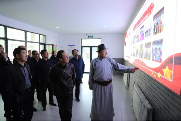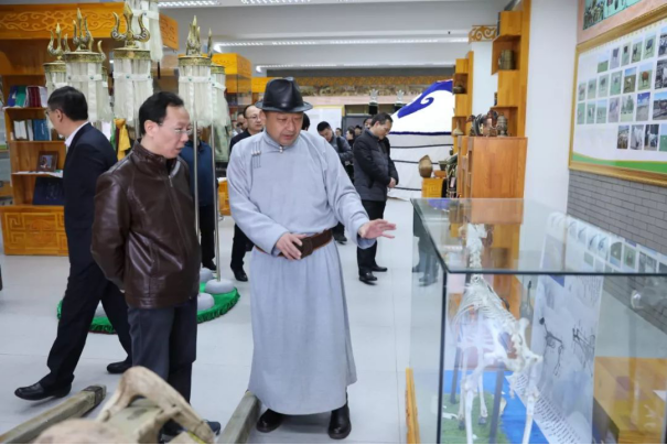 调研组一行考察了市蒙中图书馆、科技馆、民俗文化馆、古生物馆、初高中教学区及学生公寓等场所,对学校开展民族团结进步教育、中华民族共同体意识教育、意识形态和思想政治教育等情况进行调研。