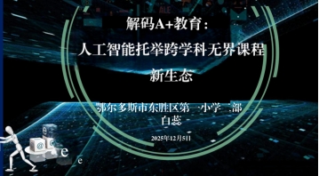 东胜区第一小学二部白蕊校长分享《解码A+教育:人工智能托举跨学科无界课程新生态-以草原红孩子课程谈有根的数智教育探究》本案例以培养人机共生有创造力的学生为目标展示人工智能赋能学校课程建设、场景创建、课堂教学、学生评价等各个环节,重塑教育生态的实践思考。