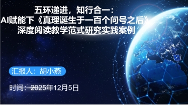 东胜区第一小学二部胡小燕老师分享:五环递进,知行合一:AI赋能下《真理诞生于一百个问号之后》深度阅读教学范式研究。案例针对小学高年级语文阅读教学浅表化问题构建“预学分析、人机协同、小组研讨、资源推送、数据评价”五环递进教学模式,以A赋能实现精准教学、优化课堂、深化思维与科学评价,实践后学生阅读能力、教师数字素养及课堂生态均显著提升,同时反思技术挑战,展望向全学科全学段推广。