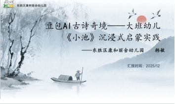东胜区康和丽舍幼儿园韩敏老师分享《豆包AI古诗奇境大班幼儿《小池》沉浸式启蒙实践》,针对传统幼儿园古诗教学中幼儿理解抽象意境困难、艺术创造力受限等痛点,以豆包A技术为核心,构建沉浸式、游戏化教学体系,通过多学科融合与家园协同,助力幼儿实现古诗学习从被动接受到主动创造的跨越。