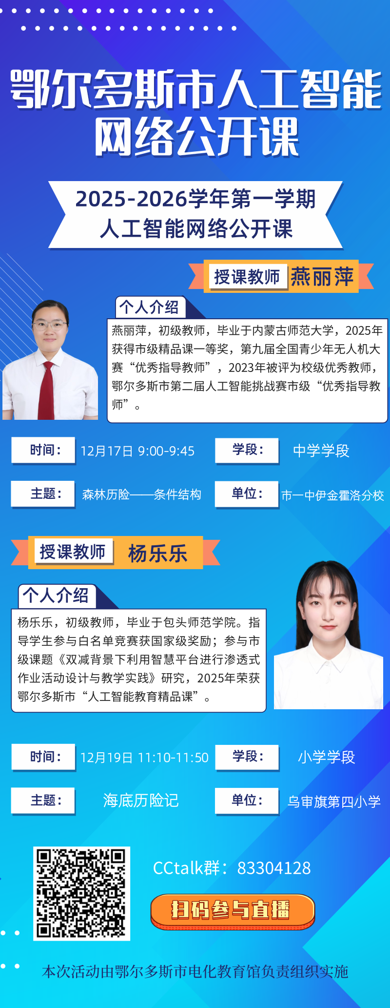 上一条:鄂托克旗棋盘井第三小学开展优秀教师示范课暨第十二届课堂教学大赛 下一条:鄂尔多斯市人工智能教学应用案例网络宣讲活动预告