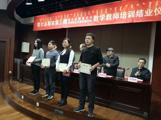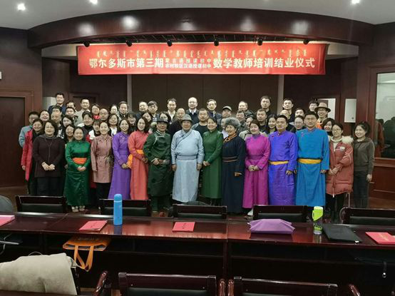 1月8日,由鄂尔多斯市教育局主办、首都师范大学承办的“鄂尔多斯市第三期蒙古语授课初中和农村牧区汉语授课初中数学专任教师专业素养提升培训”结业仪式在首都师范大学举行。市教育局副局长朝戈及相关科室负责人,首都师范大学数学科学学院党委书记刘海涛及相关负责人、授课专家出席仪式。