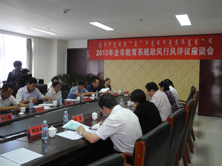 2013年8月29日,市教育局召开2013年全市教育系统政风行风评议座谈会。座谈会邀请市人大、人民政府、政协相关领导,相关部门负责人及学校部分教师、家长等与市教育局领导及相关业务科室负责人现场面对面交流,旨在通过这种评议方式倾听民声、关注民意、汇集民智,借助社会各界力量认真查找教育系统政风行风建设工作中的不足,进一步推进政风行风建设工作向纵深发展。