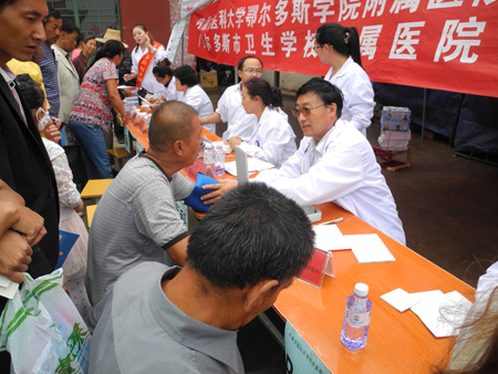 8月22日,市教育局组织市卫生学校及附属医院专家深入到准旗沙圪堵镇为当地居民义诊,教育局相关负责人陪同指导。