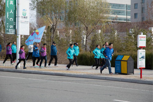 开幕式后,全体运动员参加了“爱我鄂尔多斯,做健康快乐敬业奉献教育人”金秋徒步活动。