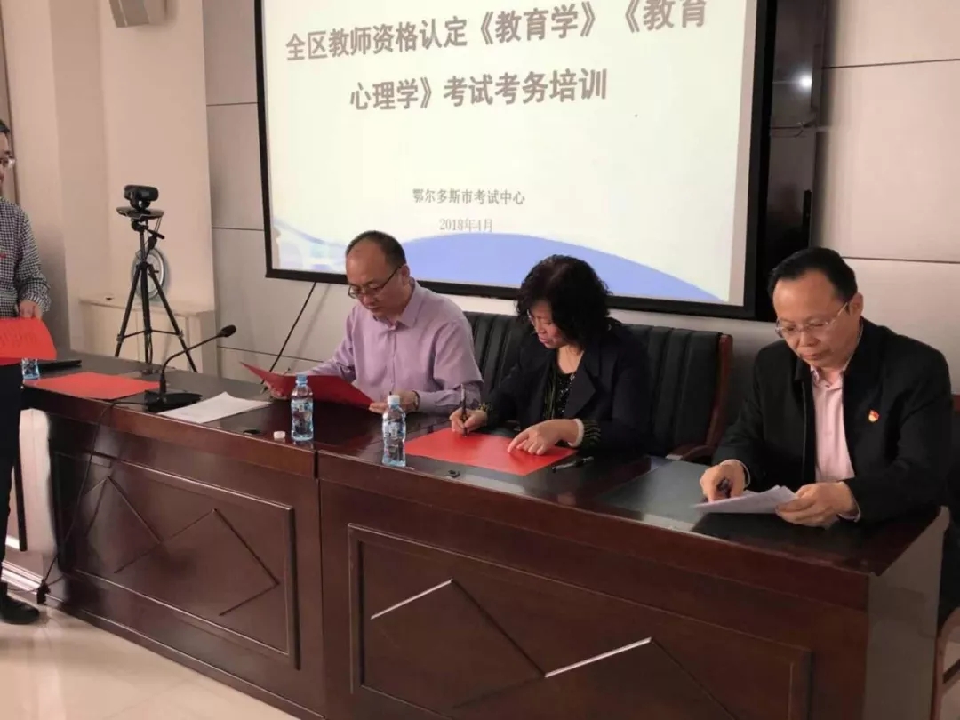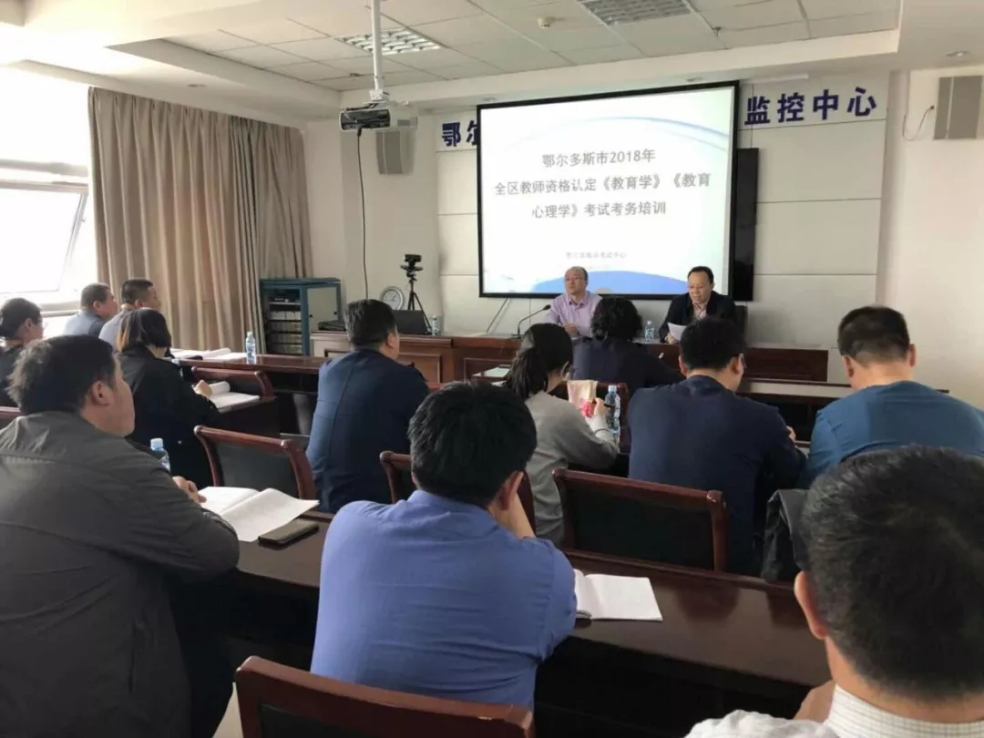 4月12日下午,鄂尔多斯市考试中心召开认定教师资格考试考务培训会,市教育局副局长朝戈、市考试中心主任奇巴雅尔、三个考点的主考、副主任、考务工作人员和市考试中心全体人员参加会议。
