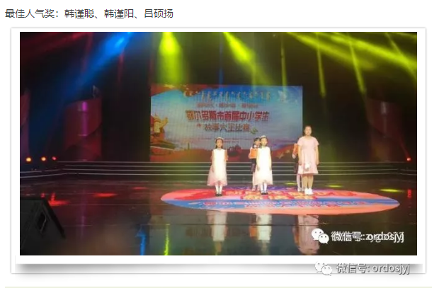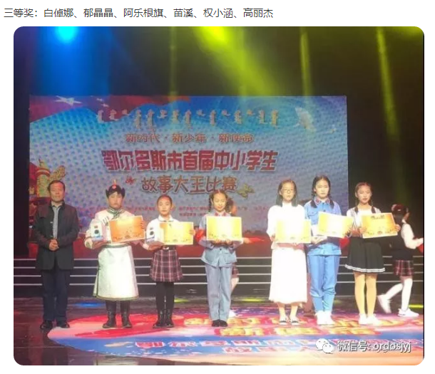 为全面贯彻落实党的十九大精神,加强思想道德和文化建设,以祖国好、鄂尔多斯好为背景,以弘扬社会正能量、做家乡好少年为主题,围绕提升中小学生口语表达水平、舞台表现力、感染力,由鄂尔多斯市广播电视台、鄂尔多斯市教育局、鄂尔多斯团市委主办,鄂尔多斯市广播电视台FM97.3曲艺评书广播及各旗区教育(教体)局承办的“新时代,新少年,新使命”鄂尔多斯市首届中小学生故事大王比赛决赛完美落幕!