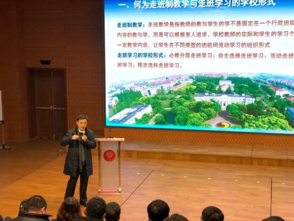 在上海外国语大学附属大境中学,卢起升校长讲授了一堂高二年级的微观经济学示范课。随后,学校教导主任作了题为《选科选考分类(层)走班设计与管理》的报告,介绍了大境中学学科走班实施与管理办法。最后卢校长就上海高考改革的基本情况、深化考试招生制度改革政策、学校教学实施的策略、学校可能产生的问题等与学员们进行了深入交流。